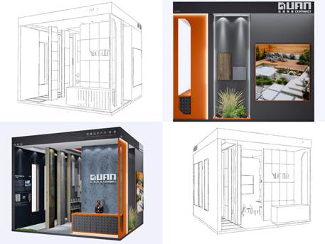 為了貼合展會屬性與客戶群體的需求,我們更多地用特有設計形式搭配各類高端成品,來展現各類生態石英磚產品的魅力,讓參展觀眾能夠深刻感受到石英磚對石材品類的替代能力,以及石英磚在設計定制方面不亞于石材的強大優勢!