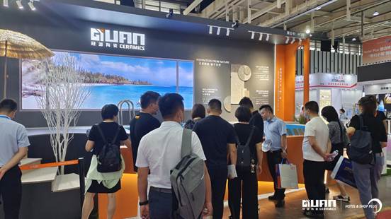 獨樹一幟的“泳池旁地磚系列”,以模擬泳池的方式對產品進行實景式陳列,體現生態石英磚高端花色的超強空間運用和設計能力。隨著酒店及商業空間行業的發展,大眾對于建筑裝飾材料和建筑與室內設計的認知也在逐漸發生著變化。新型環保材料和創意空間設計的強強聯合成為了酒店及商業空間在眾多競爭對手中脫穎而出的重要動力之一。加強輸出和諧共生的自然環保理念,于繁華都市中靜心做事潛心打磨,實現從原料—加工—成品,瓷磚生產全過程的生態環保,并將此傳遞給更多人,共護綠色地球。憑借產品高顏值和簡約精致的產品造型引起人們駐足流連,創想無限的展廳設計和順應大環境的主題吸引包括設計師、建筑師、地產商、開發商、酒店管理公司、物業管理公司、協會、媒體等駐足品鑒。展位人氣爆棚,一批又一批的客戶、經銷商在經過專業團隊介紹產品后,都向廠方表達了強烈的合作意向。
